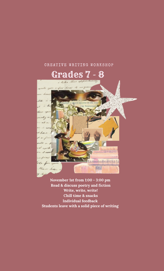 Creative Writing Workshops Grades 5/6 Creative Writing Workshop $150.00 Add To Cart Added! Grades 7/8 Creative Writing Workshop $150.00 Add To Cart Added!